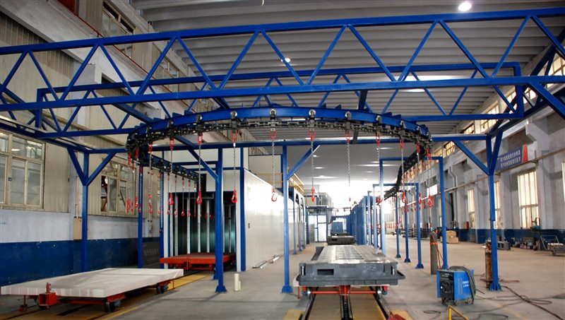 项目采用德国进口静电(diàn)喷枪,电(diàn)子自(zì)动调漆技(jì)术,电子配比(bǐ)准确无误。生产线中(zhōng),大(dà)件喷漆通过平台车输送,小件喷(pēn)漆(qī)通过悬挂链输送,大小件喷漆采用共线生(shēng)产形式。交叉作业既能满足小件悬挂喷漆作业,又能在(zài)小件不生产时,满足大件喷漆作业;同时两种工件都能(néng)在喷漆后采用烘干作业。