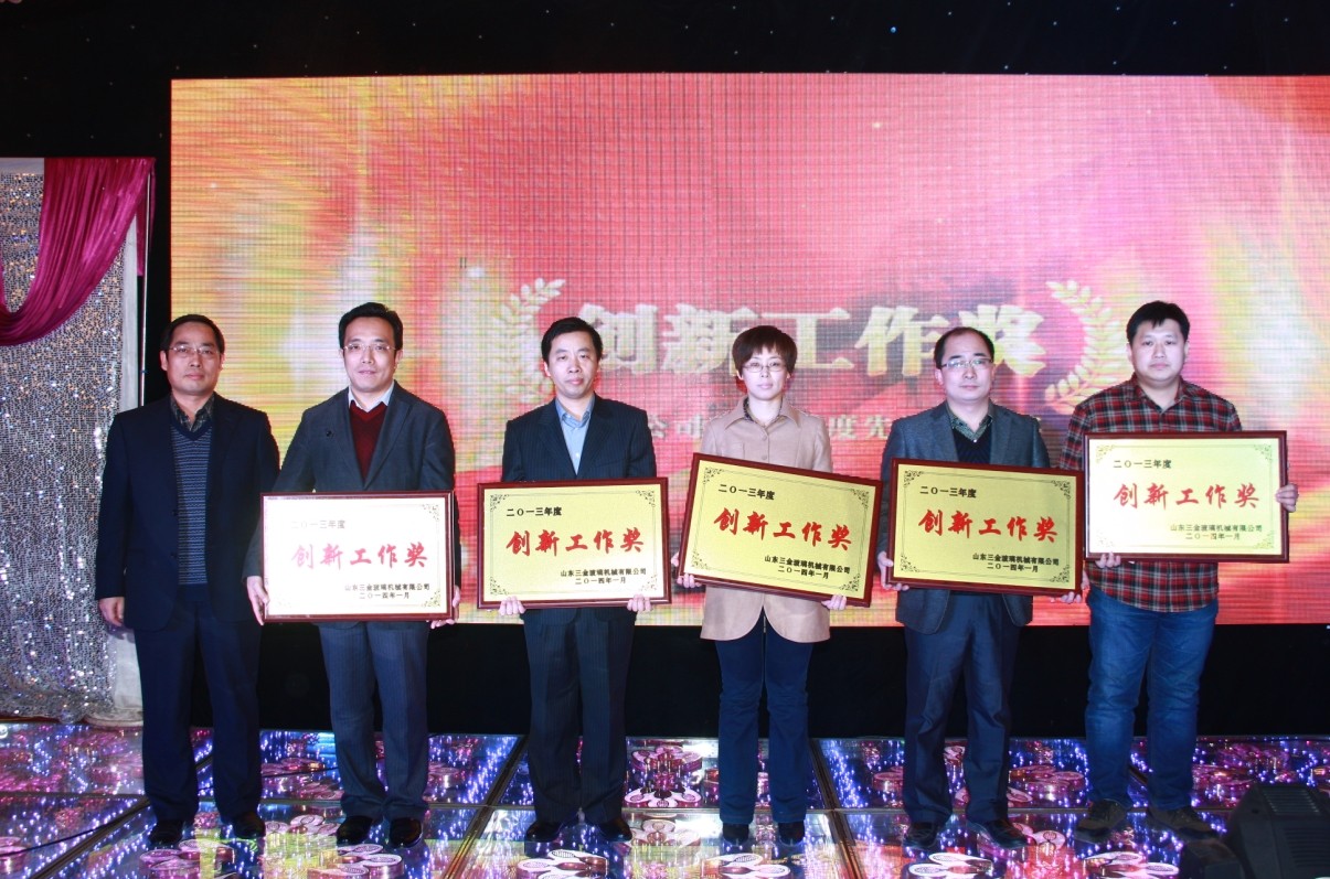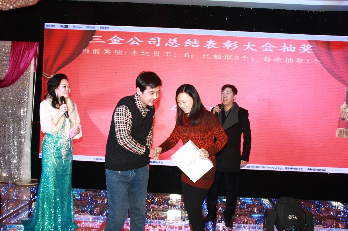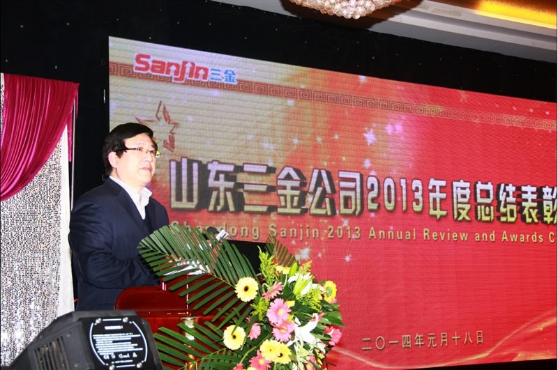 元月18日下午3:30分,山(shān)東三(sān)金公司2013年度總結表彰大會暨新春聯歡晚會(huì)在周村鳳(fèng)台大酒店二樓大廳隆(lóng)重舉行。公司2013年度先進個(gè)人、先進集體代表、中層以上幹部及室主任近200人參加了大會(huì),會議(yì)由公司副總經理王平主持。