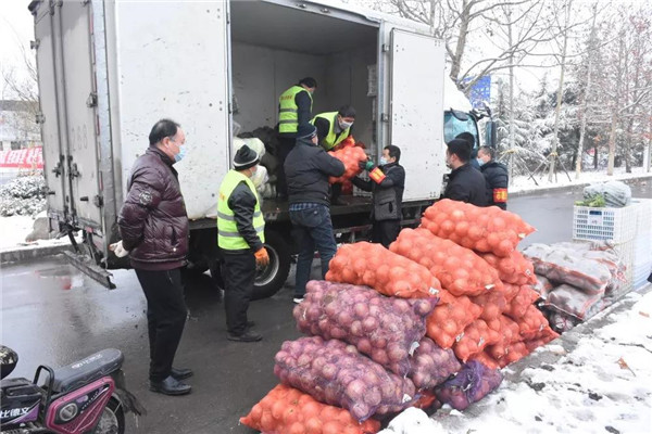 2月15日上午10點,人事行政部、安全環保部(bù)同(tóng)事將一早從高青縣蔬菜(cài)基地運來的12000斤新(xīn)鮮蔬菜成功送到了十裏村(cūn)、黑土村村村委(wěi)手(shǒu)裏,解決了600餘(yú)戶村民的後顧之憂(yōu)。