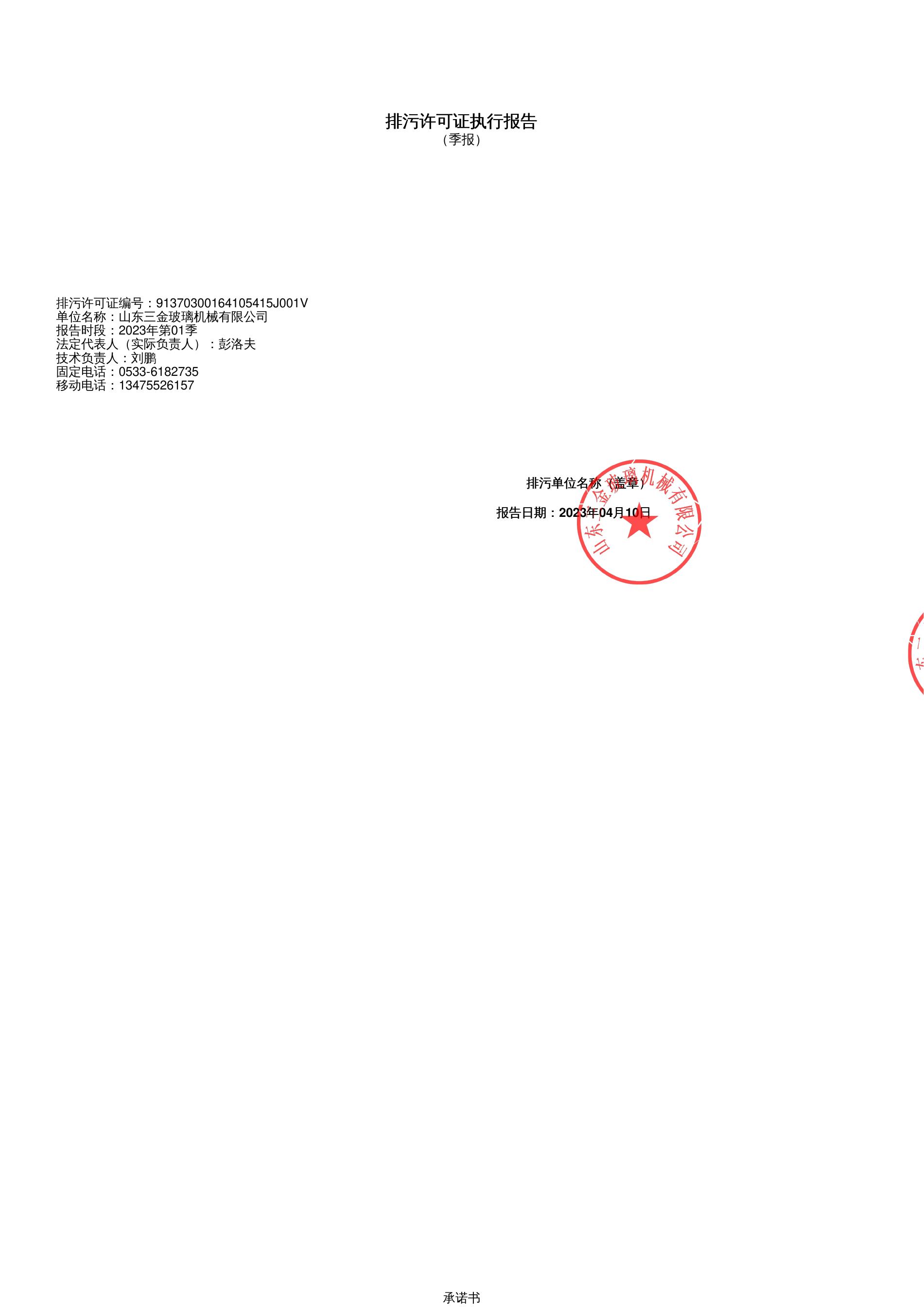 2023年(nián)一季度排汙許可證執行報告