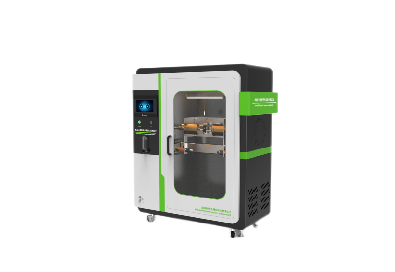 試驗介紹:將試樣鑽孔並(bìng)在規定環境條件下處理。用支杆將試樣懸掛於兩個(gè)噴火口中間,噴火口與試樣(yàng)表麵垂直。用(yòng)液化石油氣作為熱源向遇火穩定(dìng)性測定(dìng)儀(yí)的兩隻燃燒(shāo)器供氣(qì),燃燒器噴火口距(jù)板麵為30mm。按標準規(guī)定再試件下端懸掛(guà)荷載(zǎi),點燃燃燒器。用熱電偶在距離板麵5mm處測量溫度。試驗初(chū)期應在不使試(shì)樣晃動的情況(kuàng)下(xià),去除掉落在熱電偶上的(de)已炭化的護麵(miàn)紙。 通過調節,在3min內把溫度控製(zhì)在(800±30)℃,試(shì)驗(yàn)過程中一直(zhí)保持此溫度。從試件遇火開(kāi)始計時至試件(jiàn)斷裂(liè)破壞。記錄每個試件被燒斷的時間,以五個試件中小(xiǎo)值作為該組試樣的遇火穩定性(xìng),至1min。